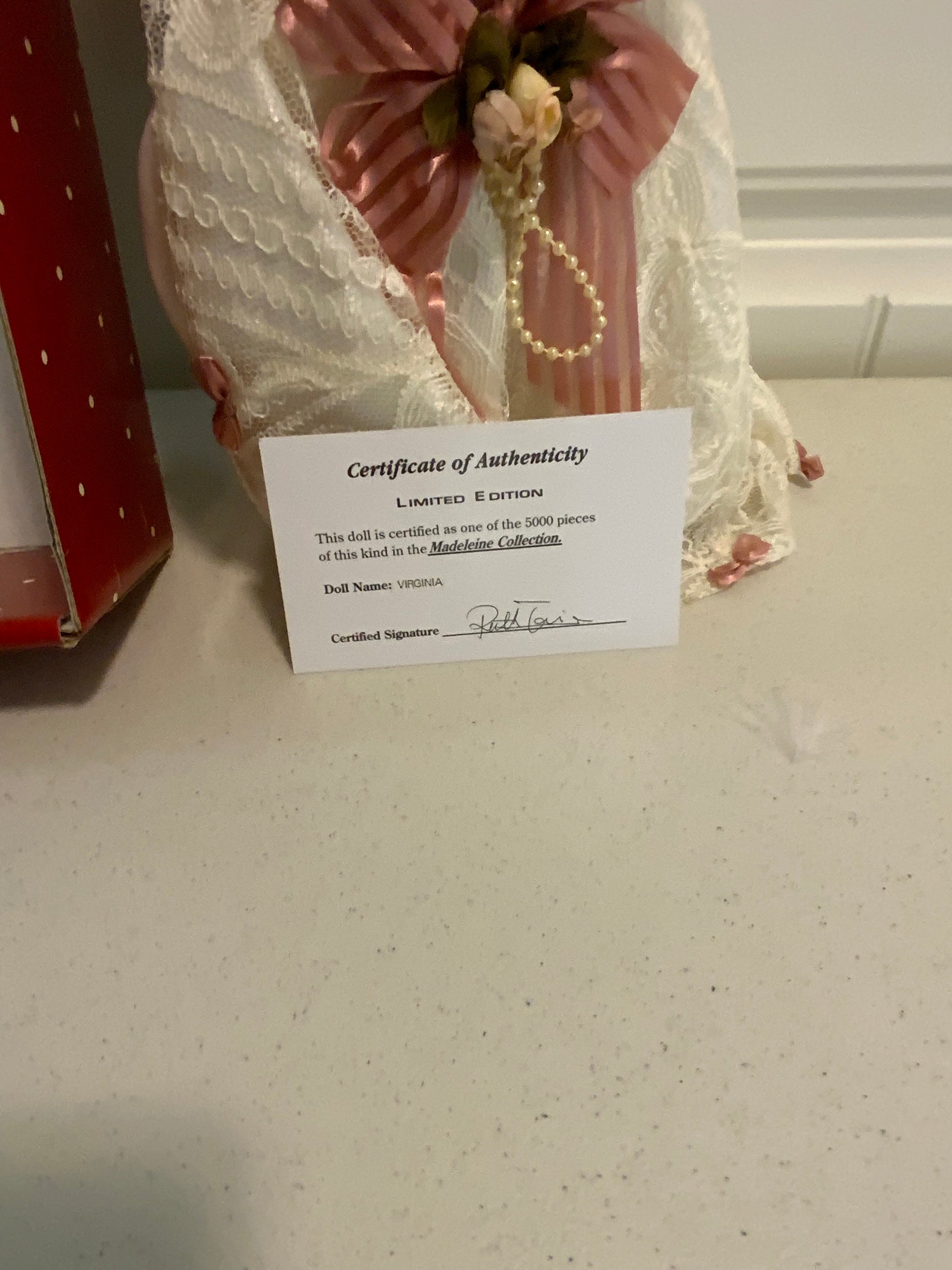 Experience the timeless beauty and elegance of the Madeleine Collection's limited edition Porecelain Doll. Handcrafted and named Virginia, this intricate doll comes with a certificate of authenticity, perfect for collectors and enthusiasts alike.