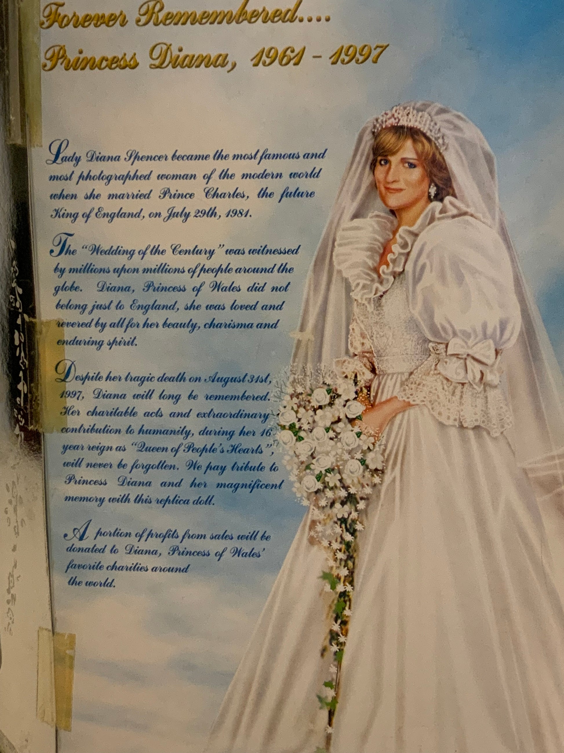 This limited edition Barbie doll of Princess Diana, commemorating her life from 1961 to 1997, is a must-have for any collector. With exquisite detailing and iconic fashion, this doll is a timeless tribute to a beloved princess and humanitarian. A perfect addition to any collection.